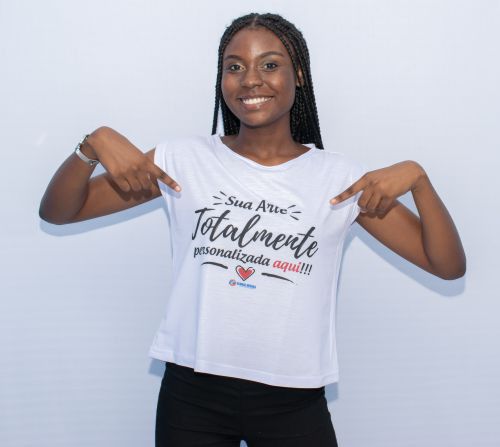 As camisas personalizdas são feitas em tecido 100% poliéster, com estampa tamanho a4, tanto na frente como no verso, que é opcional. Você pode colocar as informações que quiser, sem limite de imagens, textos ou outras informações.
